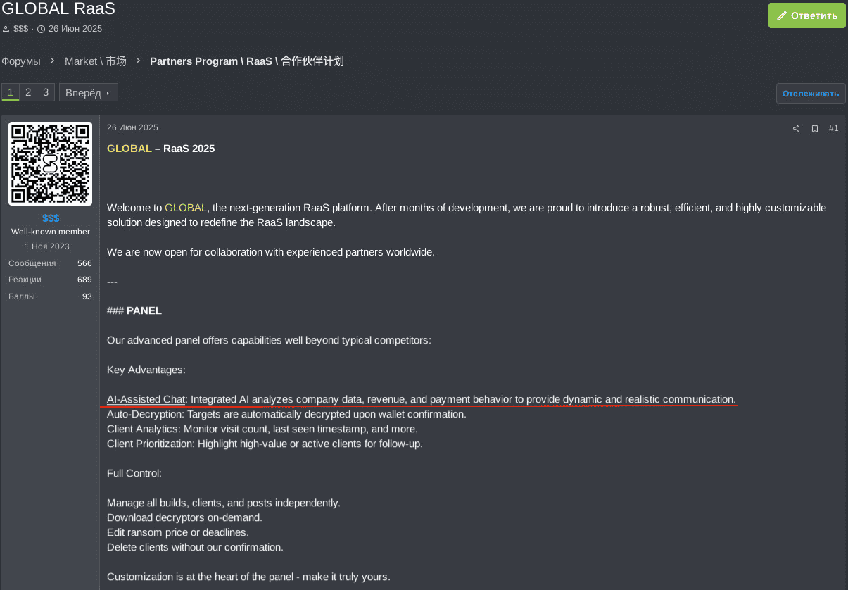 The actor Chernomor has advertised an AI-powered SMTP warming tool on the BHF underground forum, representing a significant evolution in email-based threat capabilities. This tool leverages AI to create sophisticated, realistic email interaction patterns designed to manipulate email service provider reputation systems and bypass anti-spam defenses.