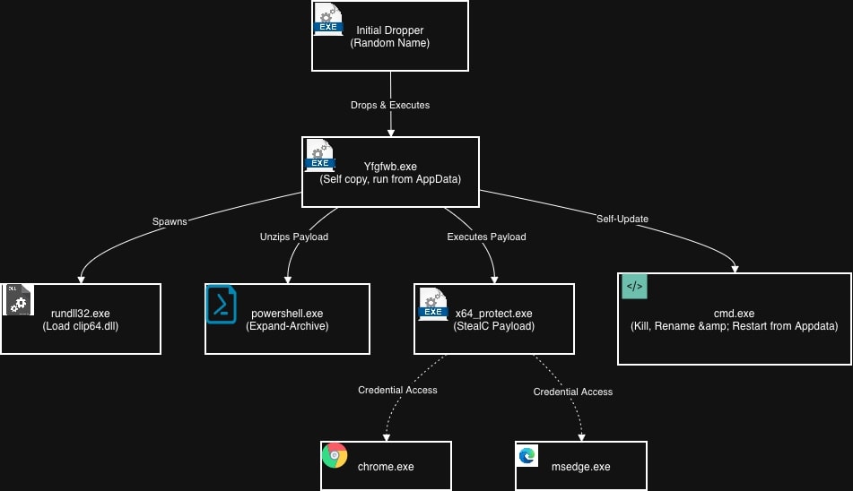 x64_protect.exe - The StealC infostealer payload that performs credential theft from browsers (chrome.exe, msedge.exe)
