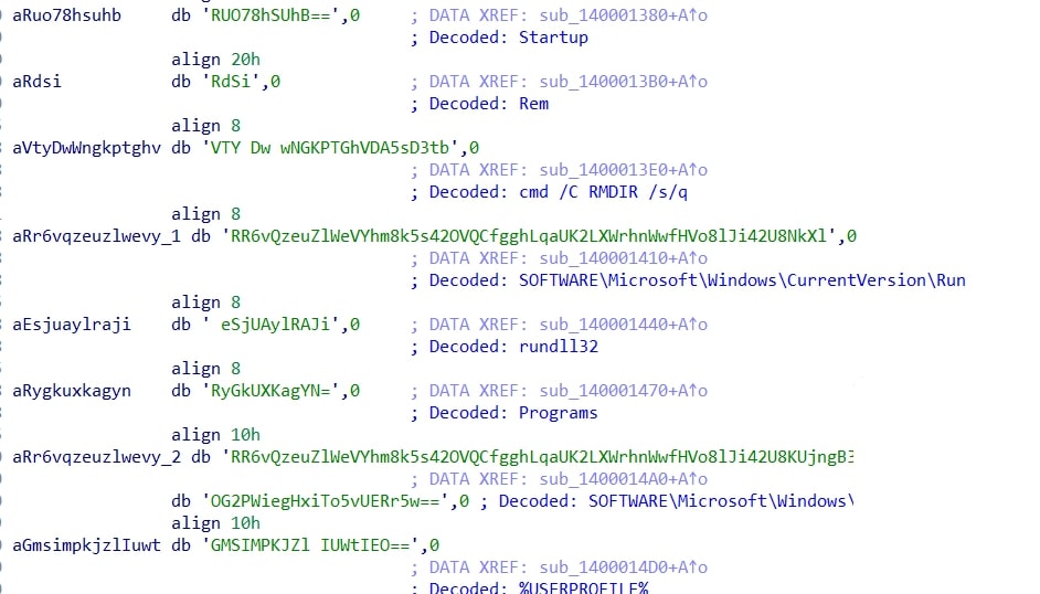 To assist with analysis, the following IDAPython script can automatically decrypt Amadey's encrypted strings: