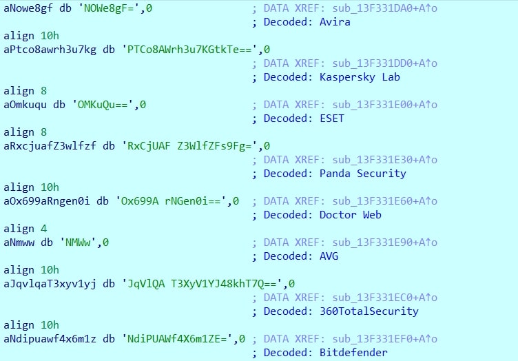 Amadey attempts to identify installed security software to tailor its behavior accordingly. It checks for the following products and assigns a numeric code: