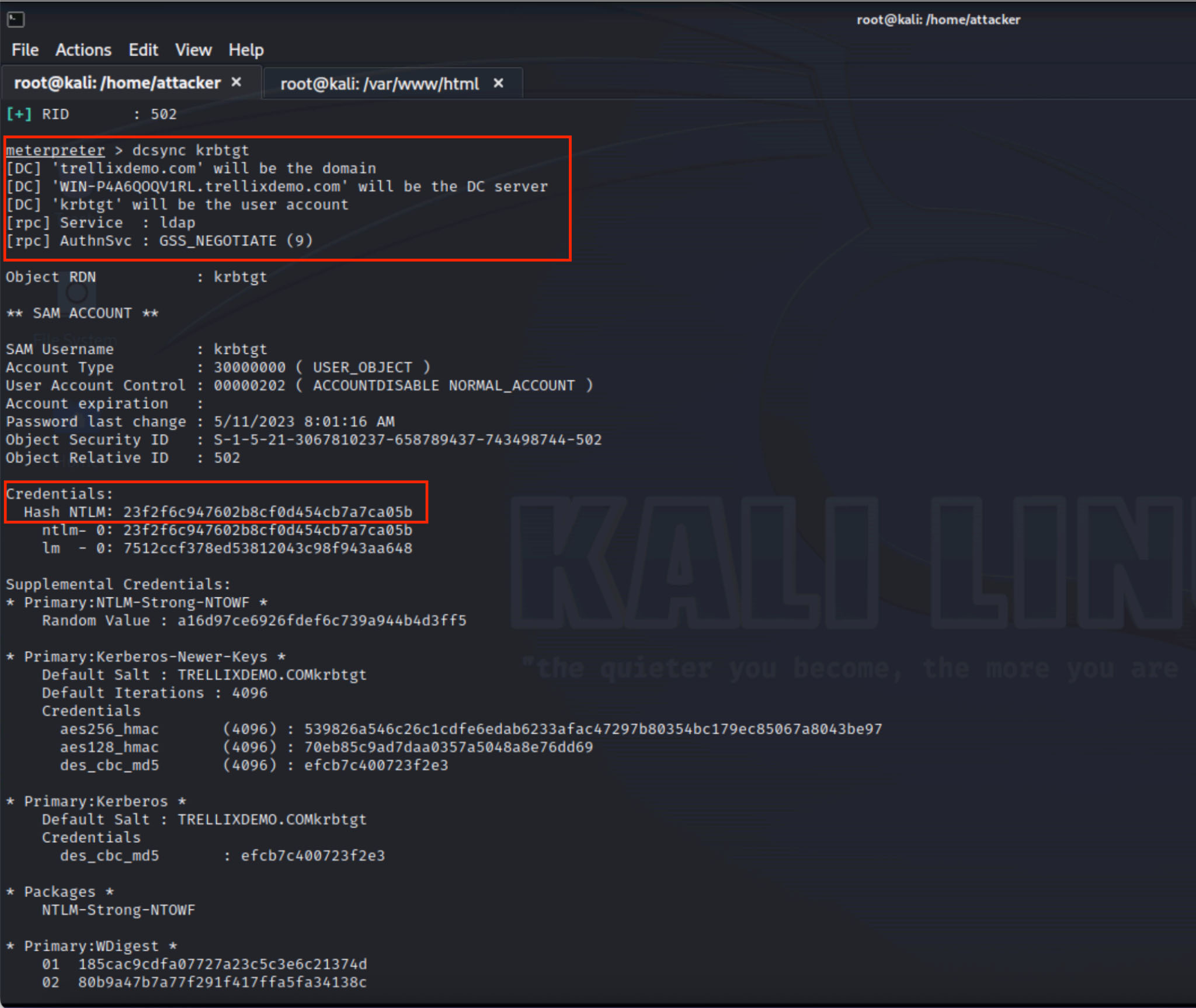 The ultimate prize of this technique is the master key of the Active Directory server - the krbtgt hash. Once captured, it grants the attacker golden ticket capabilities, providing near-permanent, absolute control over the entire domain. While often associated with tools like Mimikatz, attackers can execute DCSync via various platforms, including Meterpreter shells and custom scripts.