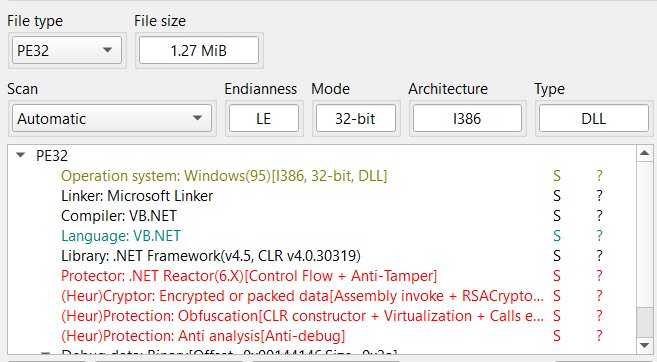 Initial analysis revealed the file to be a .NET DLL, protected by .NET Reactor. The protected version was successfully unpacked using standard, readily available tools designed for .NET Reactor. Following extraction, the files code became partially visible, revealing sections that are legible and comprehensible.