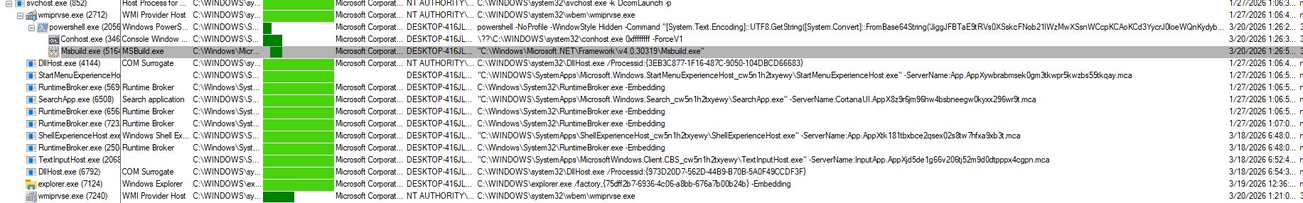 - Control system utilities: Monitor and restrict the use of abused legitimate Windows binaries such as cmstp.exe (used for UAC bypass) and Msbuild.exe (used for process hollowing).