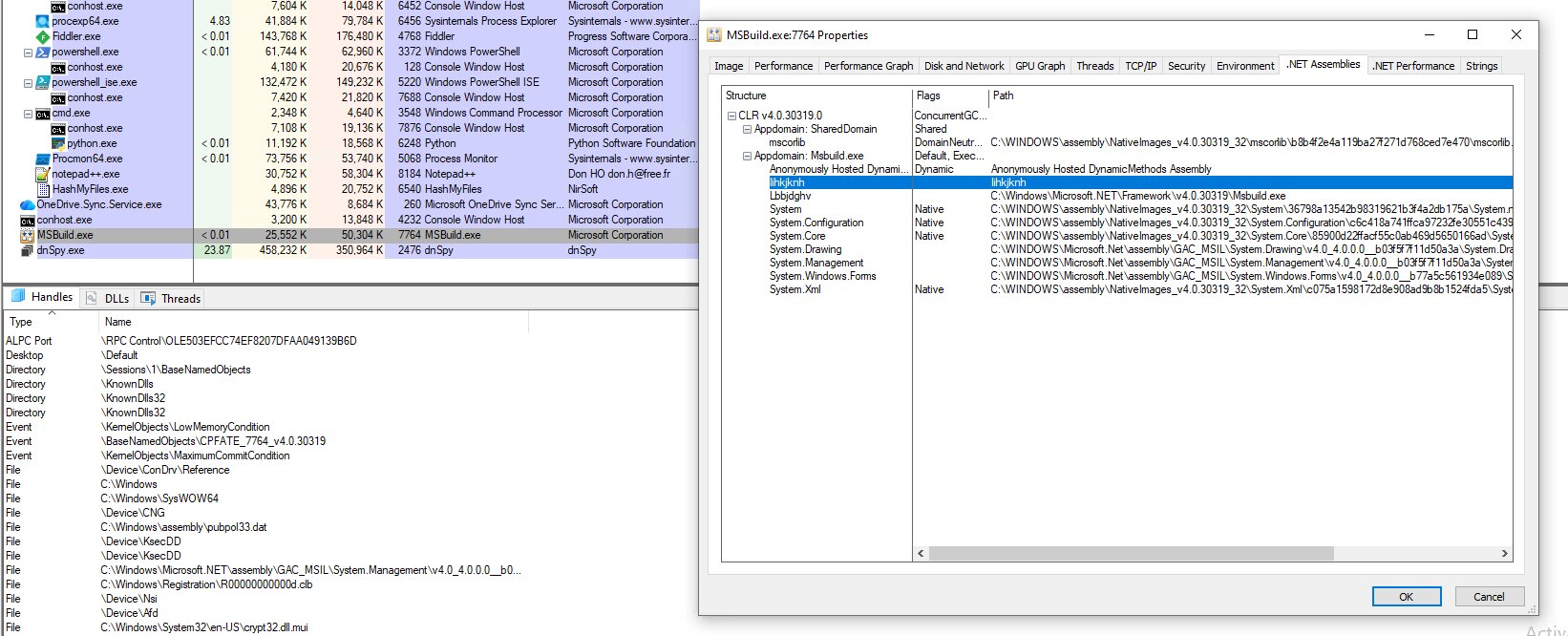 - Creating the Msbuild.exe process in a suspended state.