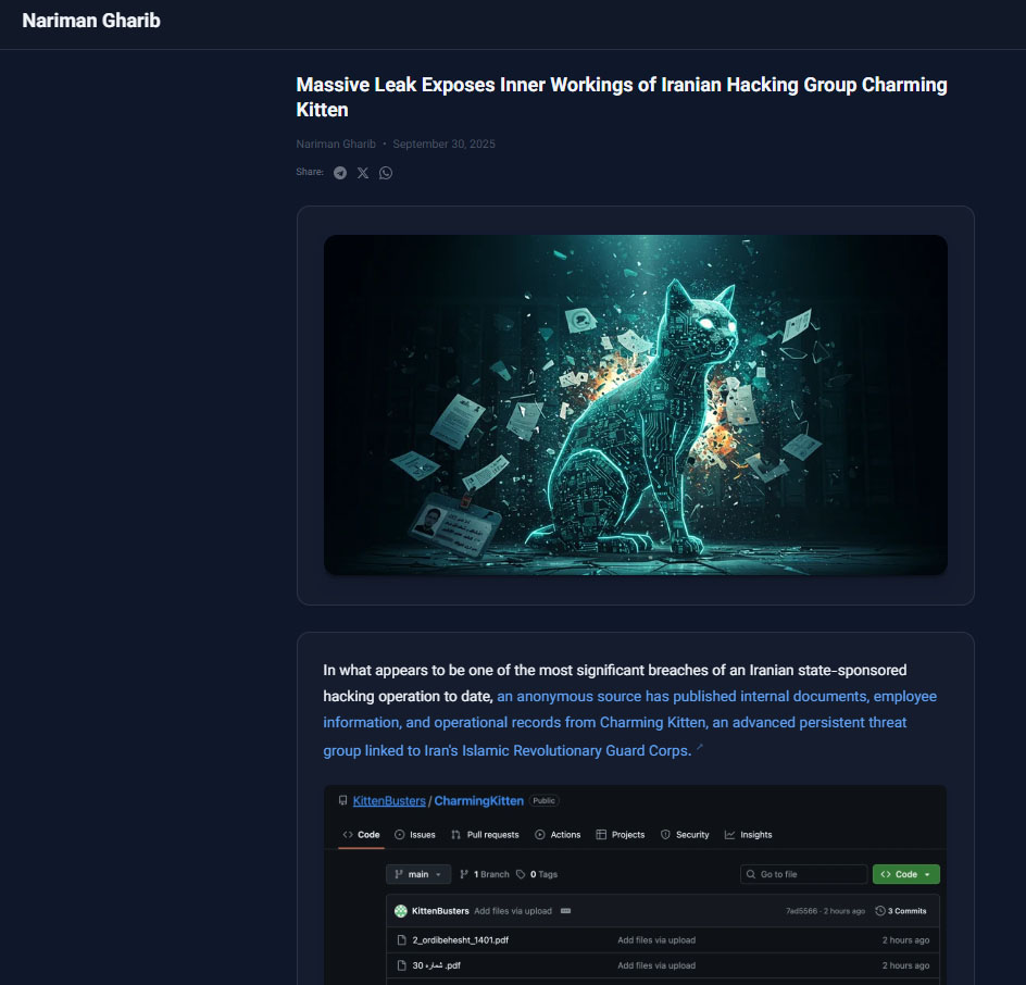 The December 2, 2025, publication of a massive leak revealing the inner workings of the IRGC-linked Department 40 (a.k.a. APT35, Charming Kitten, and Fresh Feline) has renewed global attention on the phenomenon of state-sponsored cyber disclosures. The leak, made public by UK-based opposition activist Nariman Gharib, claims to include real identities, organizational charts, operational orders, target lists, and evidence linking cyber activity to physical assassination plotting. This dramatic exposure provides a stark reminder that cyber leaks increasingly cross the boundary from technical exposure to human and operational unmasking. In light of this recent disclosure, we revisited a decade of major cyber leaks — from government programs to contractor firms and insider-driven exposures — to analyze motivations, patterns, and long-term impacts.