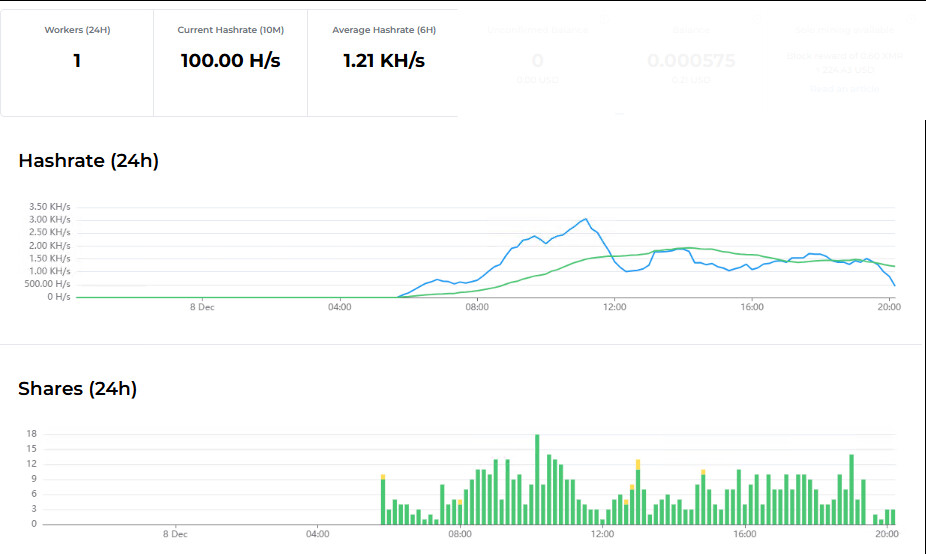 Historical data shows sporadic mining activity throughout November 2025, with a distinct spike in activity beginning on December 8, 2025. This correlates with the analysis timeline, suggesting either a fresh deployment of the campaign or the activation of new nodes.